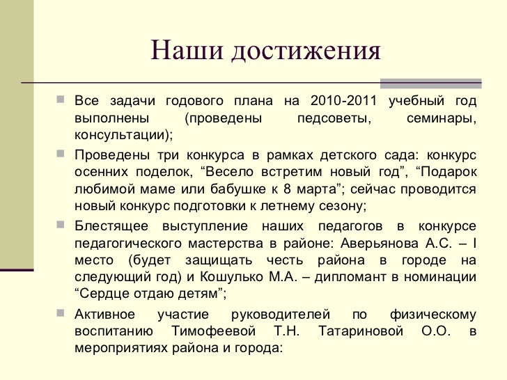 Методическая разработка по теме Представление на заместителя заведующего. ПРЕДСТАВЛЕНИЕна . Педагогический стаж работы. В должности заместителя заведующего по УВР работает с. Метеневой Инновационные формы работы с семьей в детском саду на современном этапе развития образования 2. Васильевой, Программа воспитания и обучения в Российской Монтессори школе Е. Хилтунен, Основы безопасности детей дошкольного возраста Н. А. Авдеевой, Наш дом природа Н. А. Рыжовой, элементы системы К. Программы обеспечивают высокий уровень интеллектуального развития детей, методы и технологии стимулируют активность детей, творчество, воображение, поиск нестандартных решений. Об эффективности реализации образовательных программ говорят и положительные показатели по развитию детей такие как отсутствие школьно не зрелых детей, низкий уровень их заболеваемости. Как руководитель по учебно воспитательной работе, она проводит мониторинг деятельности воспитателей, разрабатывает анкеты, тесты для самоанализа педагогов, проводит консультирование, оказывает методическую помощь. Планирует учебно воспитательную, методическую работу с учетом профессиональных навыков, опыта воспитателей и с целью создания оптимальной модели учебно воспитательного процесса в детском саду, предусматривая помощь воспитателям в самообразовании, в повышении квалификации педагогов. Обсуждает с педагогами результативность их работы и планирует совместно с ними пути совершенствования их деятельности и предметной среды. Вся методическая работа строится с учетом уровня профессиональной подготовленности педагогов, опыта работы с детьми, а также личностных особенностей педагогов. Администрация обеспечивает повышение профессионального роста педагогов, так за последние три года курсовую переподготовку при ТОГИРРО прошли 2. В рамках подготовки старших дошкольников к обучению на первой ступени школьного образования ежегодно разрабатывается план по преемственности совместных действий с МОУ СОШ. Реализуя социальный запрос родительского контингента, в детском саду создана и функционирует сеть услуг, представленная кружковой работой различной направленности художественно эстетической, физкультурно оздоровительной, развивающие занятия. Она контролирует заключение договоров на предоставление услуг, а так же качество проведения занятий с детьми. Детский сад с успехом участвовал в городских конкурсах и добился следующих результатов. Презентация Заведующей Доу Для Аттестации' title='Презентация Заведующей Доу Для Аттестации' />Портфолио заведующего БДОУ г. Активное участие руководителя ДОУ в общественной жизни помогает легче находить общий язык с. Взаимодействие ДОУ с органами исполнительной власти. На этой странице Вы найдете информацию о заведующем государственного. Эксперт аттестационной комиссии по аттестации руководителей. Тем более что деятельность заведующего детским садом, в отличие от. ПК внесли в квалификационные характеристики аттестации педагогов. Аттестация заведующей детского сада. Должностные обязанности. Осуществляет руководство ДОУ в соответствии в его Уставом и законодательством. Презентация Проведение аттестации педагогических работников. Подготовили заместитель заведующего по воспитательно образовательной. Приказ О Продлении Инст